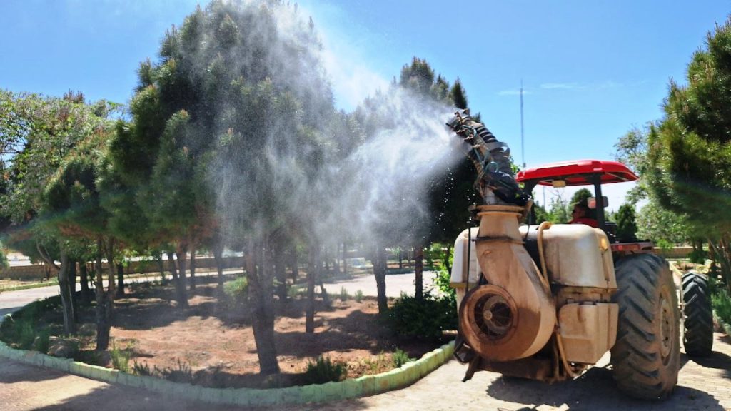 با توجه به این مهم که رشد گیاهان همواره تحت تاثیر عوامل محدود کننده ای همچون آفات قرار میگیرد و این آفات باعث ضعف عمومی و در نهایت خشکیدگی گیاه میشود .بنابراین شهرداری سنخواست اقدام به سم پاشی درختان پارک ها و معابر سطح شهر کرده تا از خشکیدگی درختان جلوگیری شود.